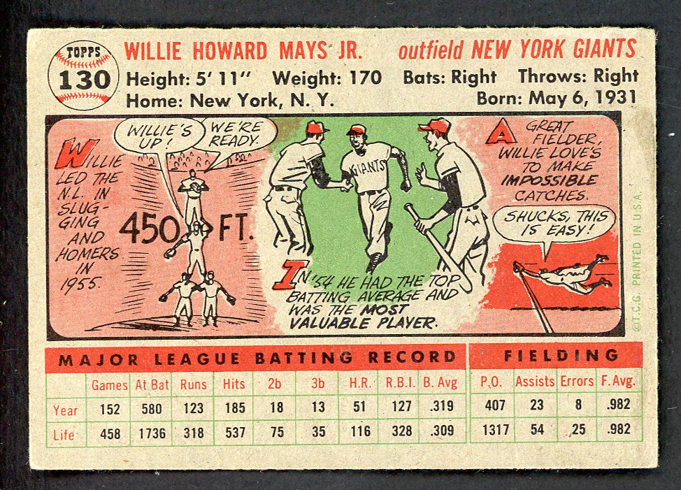1956 Topps Baseball #130 Willie Mays Giants VG-EX 543301