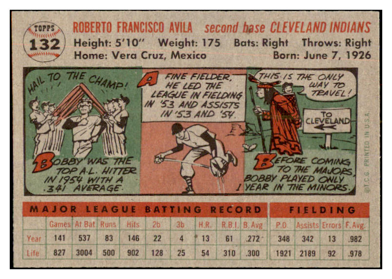 1956 Topps Baseball #132 Bobby Avila Indians EX-MT Gray 528384