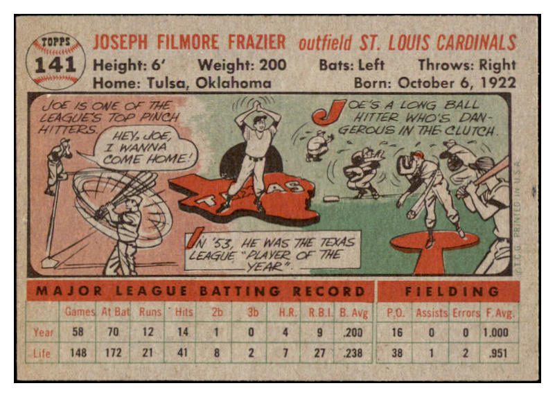 1956 Topps Baseball #141 Joe Frazier Cardinals EX-MT Gray 528460
