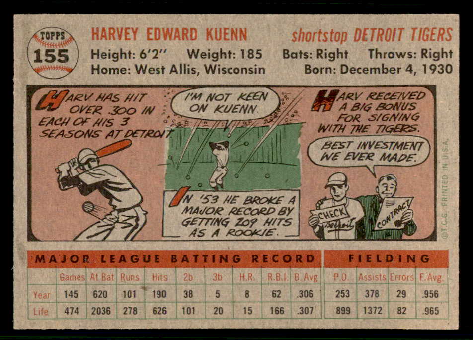 1956 Topps Baseball #155 Harvey Kuenn Tigers NR-MT Gray 541219