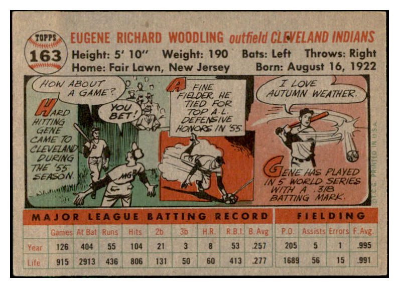 1956 Topps Baseball #163 Gene Woodling Indians EX-MT Gray 535186