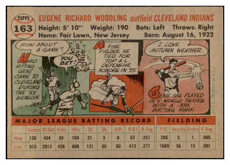 1956 Topps Baseball #163 Gene Woodling Indians EX-MT Gray 535187
