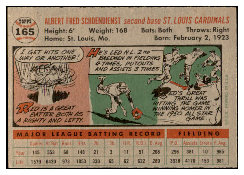 1956 Topps Baseball #165 Red Schoendienst Cardinals EX-MT Gray 535188