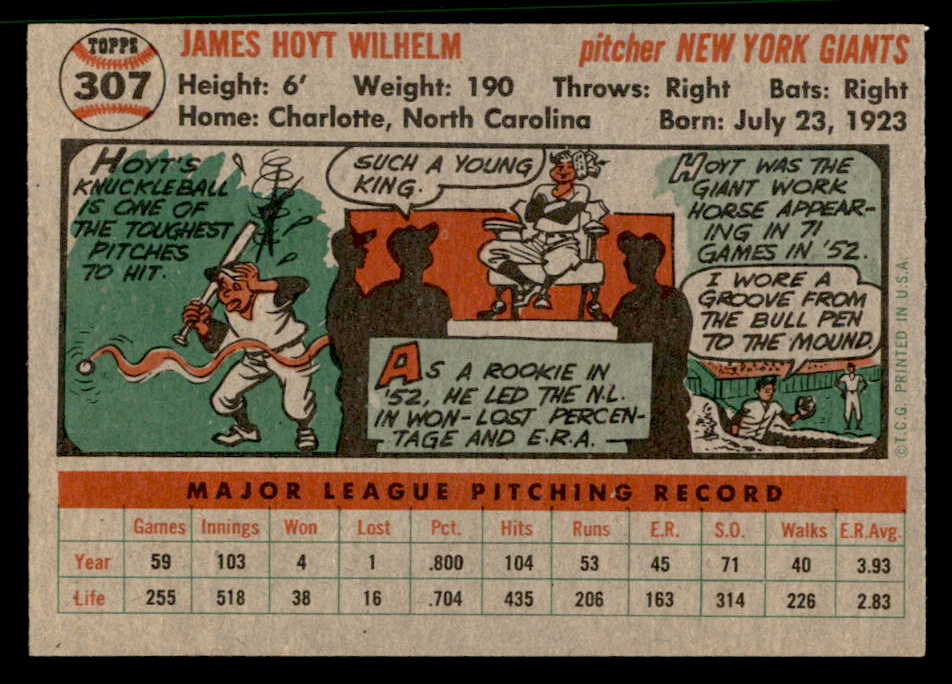 1956 Topps Baseball #307 Hoyt Wilhelm Giants VG-EX 544678