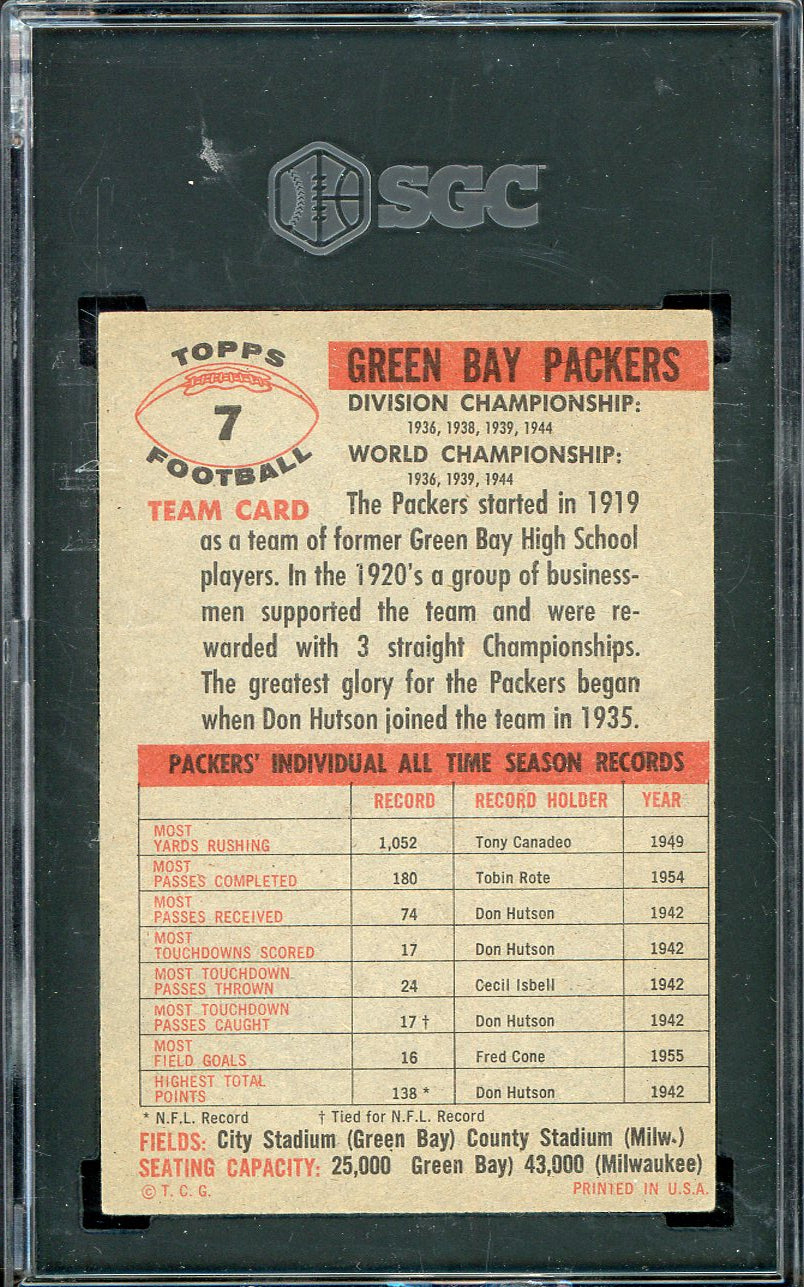 1956 Topps Football #007 Green Bay Packers Team SGC 4 VG-EX 547578
