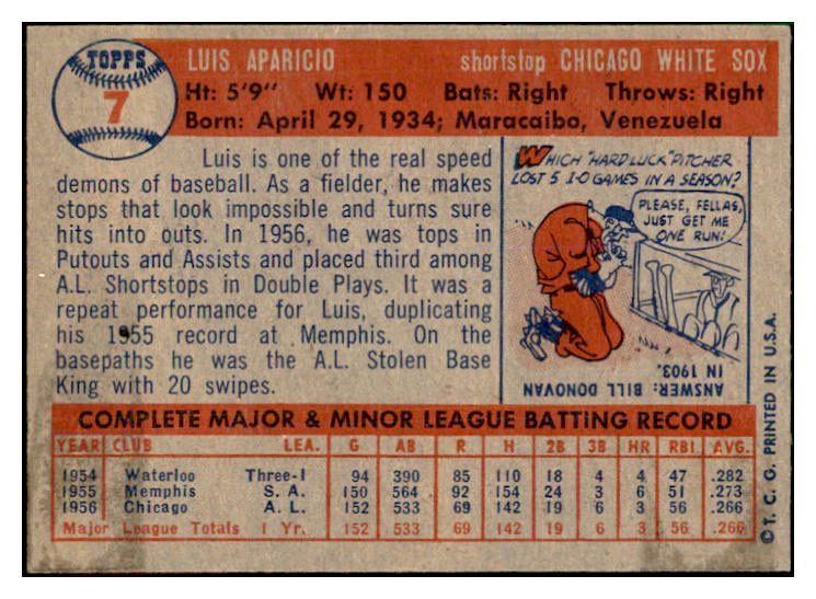 1957 Topps Baseball #007 Luis Aparicio White Sox EX-MT 537374