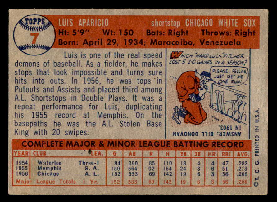 1957 Topps Baseball #007 Luis Aparicio White Sox EX-MT 540050