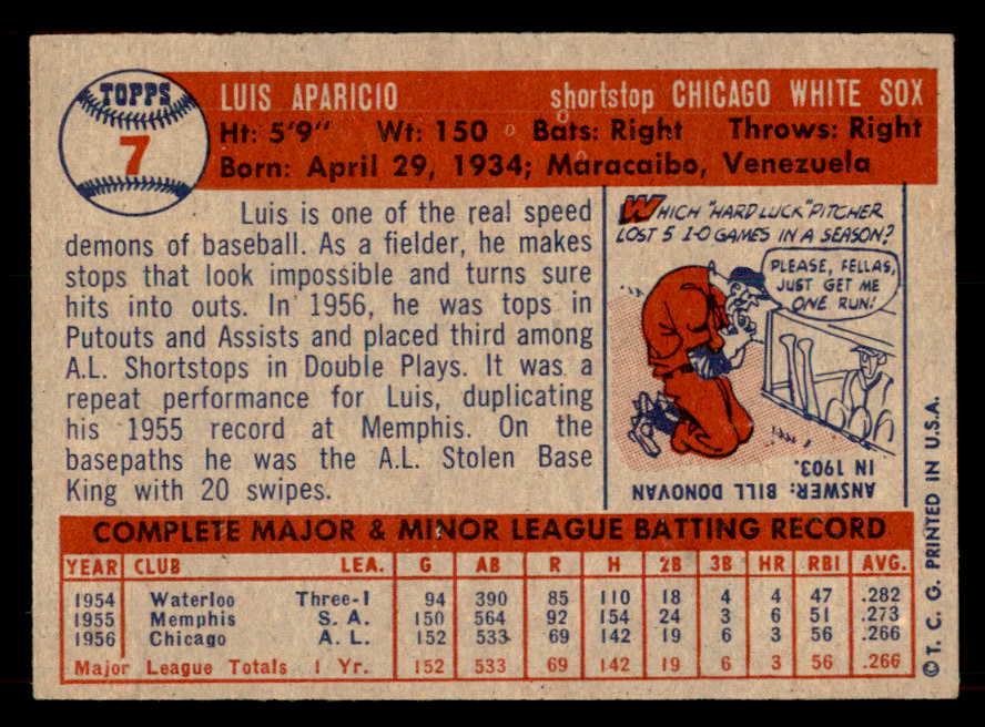 1957 Topps Baseball #007 Luis Aparicio White Sox EX-MT 546698