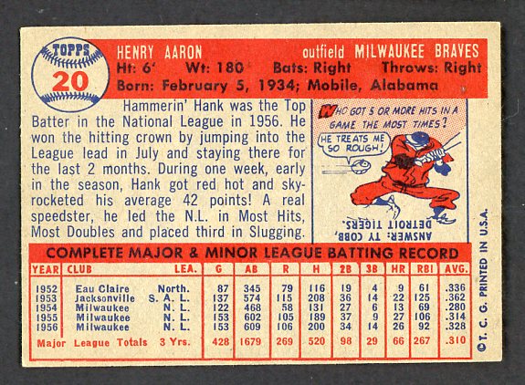 1957 Topps Baseball #020 Hank Aaron Braves NR-MT 538620