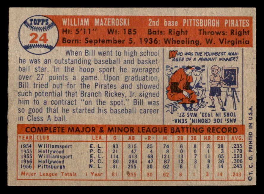 1957 Topps Baseball #024 Bill Mazeroski Pirates EX-MT 547194