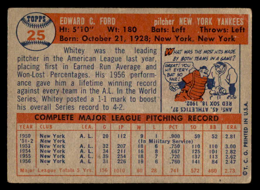 1957 Topps Baseball #025 Whitey Ford Yankees VG 540066