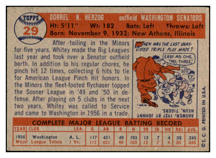 1957 Topps Baseball #029 Whitey Herzog Senators EX 532512