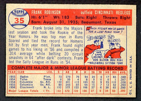 1957 Topps Baseball #035 Frank Robinson Reds NR-MT 541903
