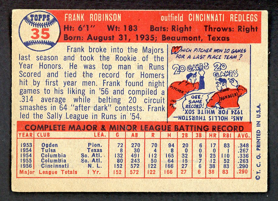 1957 Topps Baseball #035 Frank Robinson Reds VG-EX 543293