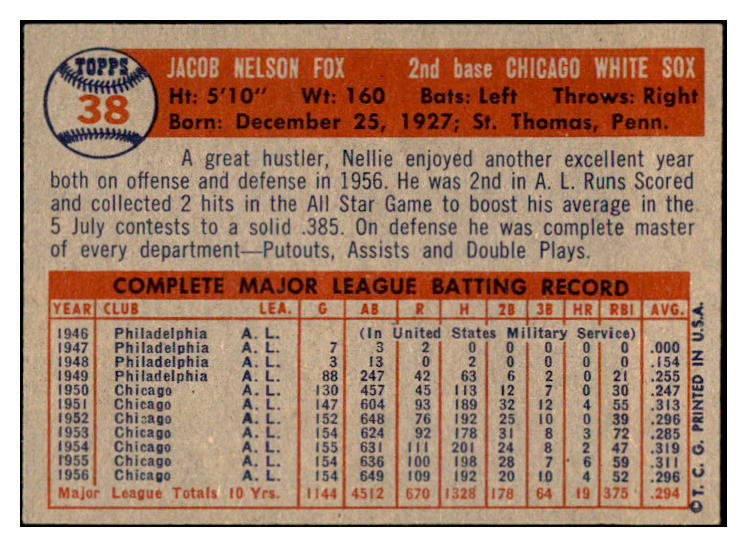 1957 Topps Baseball #038 Nellie Fox White Sox EX-MT 532482