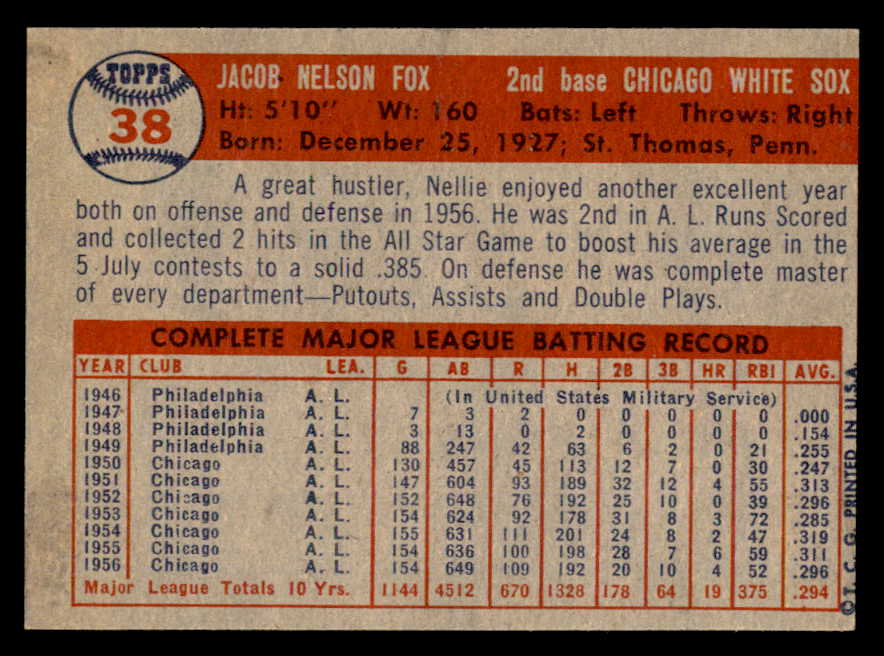 1957 Topps Baseball #038 Nellie Fox White Sox NR-MT 540070