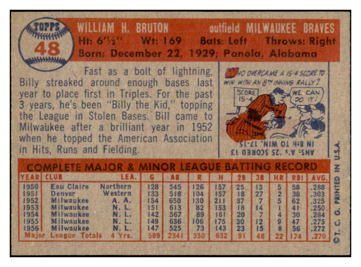1957 Topps Baseball #048 Bill Bruton Braves EX-MT 534942