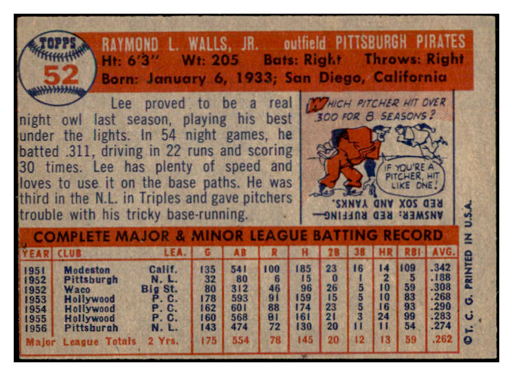 1957 Topps Baseball #052 Lee Walls Pirates NR-MT 534892