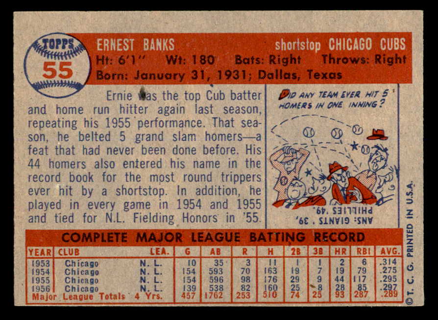 1957 Topps Baseball #055 Ernie Banks Cubs EX 539336