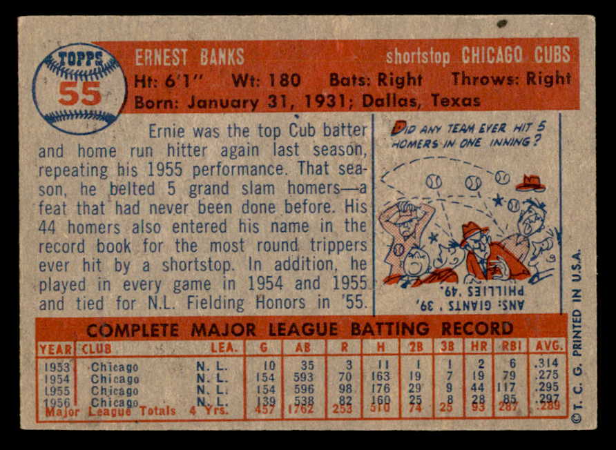 1957 Topps Baseball #055 Ernie Banks Cubs EX-MT 547221