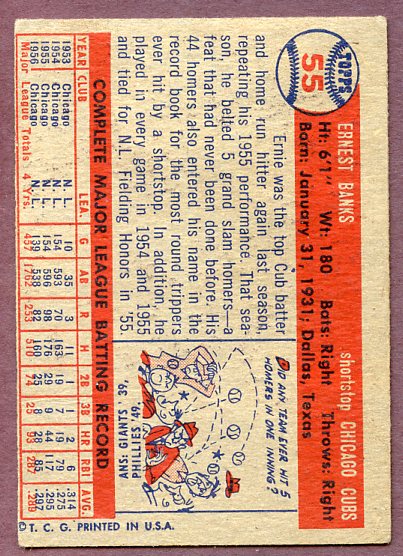 1957 Topps Baseball #055 Ernie Banks Cubs VG-EX 414864