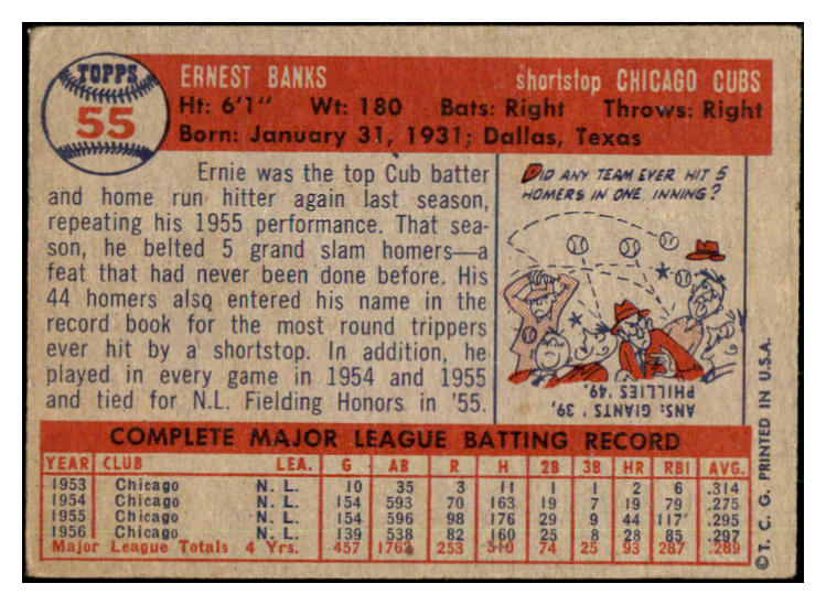 1957 Topps Baseball #055 Ernie Banks Cubs VG-EX 442162
