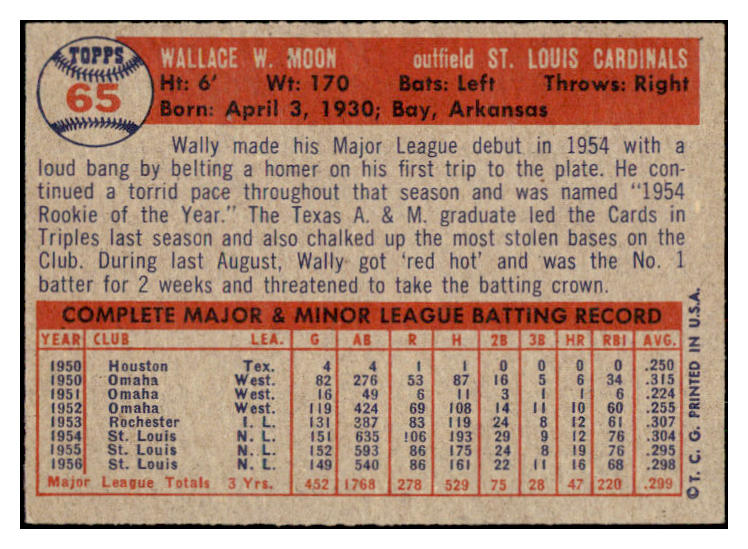 1957 Topps Baseball #065 Wally Moon Cardinals EX-MT 531033