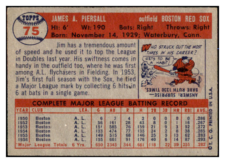 1957 Topps Baseball #075 Jimmy Piersall Red Sox VG-EX 524986