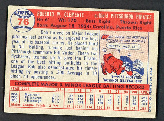 1957 Topps Baseball #076 Roberto Clemente Pirates VG-EX 541904