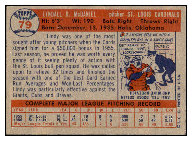 1957 Topps Baseball #079 Lindy McDaniel Cardinals EX-MT 535425