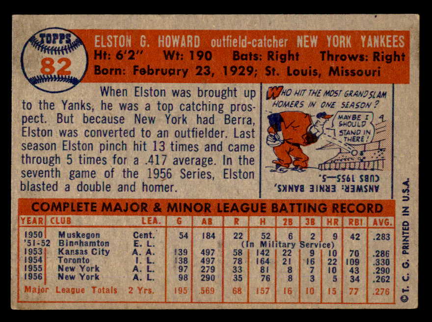 1957 Topps Baseball #082 Elston Howard Yankees EX+/EX-MT 540079