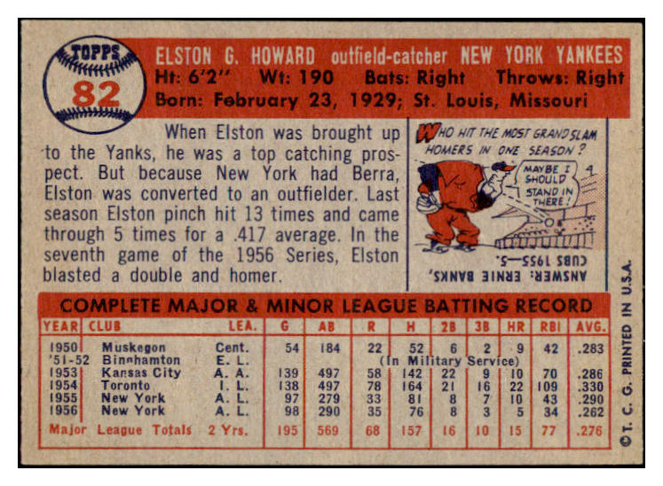 1957 Topps Baseball #082 Elston Howard Yankees EX-MT 531032