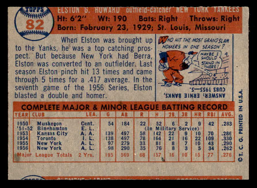 1957 Topps Baseball #082 Elston Howard Yankees EX-MT 547196