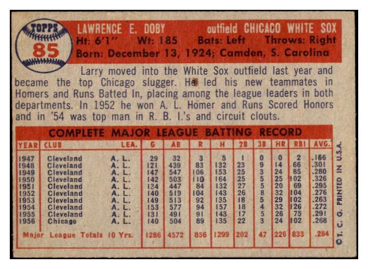 1957 Topps Baseball #085 Larry Doby White Sox EX-MT 531031