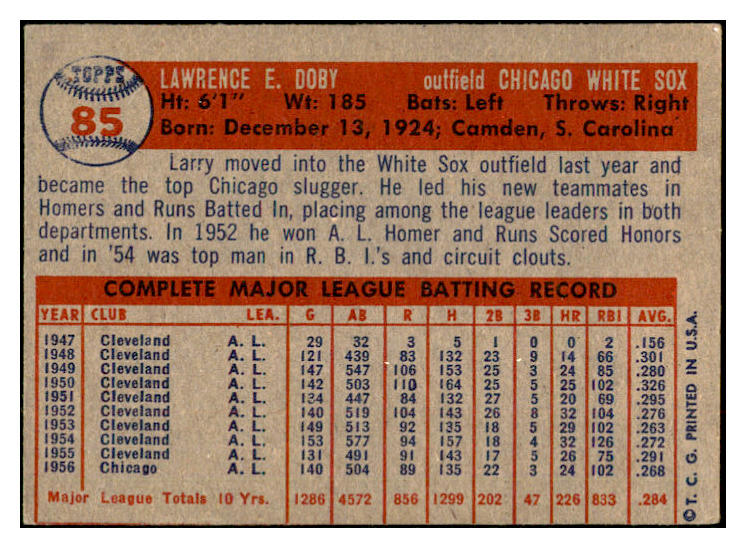 1957 Topps Baseball #085 Larry Doby White Sox EX-MT 532472