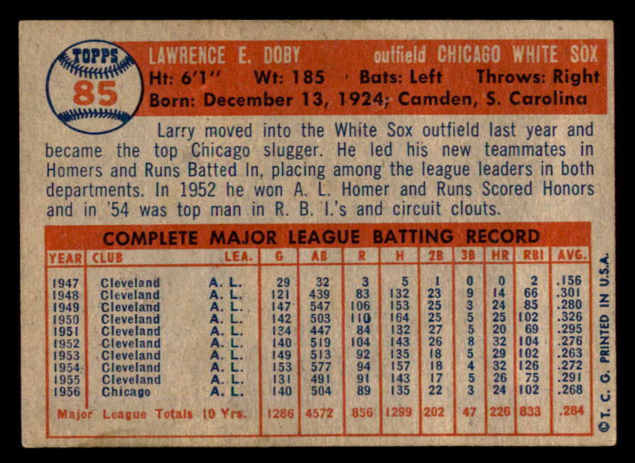1957 Topps Baseball #085 Larry Doby White Sox EX-MT 540073