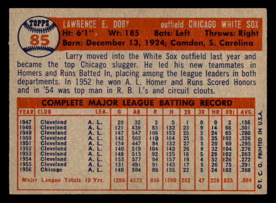 1957 Topps Baseball #085 Larry Doby White Sox EX-MT 547222