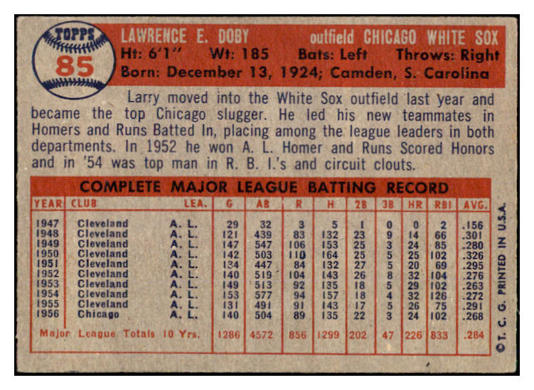 1957 Topps Baseball #085 Larry Doby White Sox VG-EX 524958
