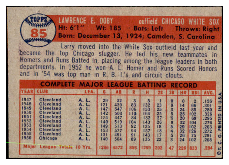 1957 Topps Baseball #085 Larry Doby White Sox VG-EX 525005