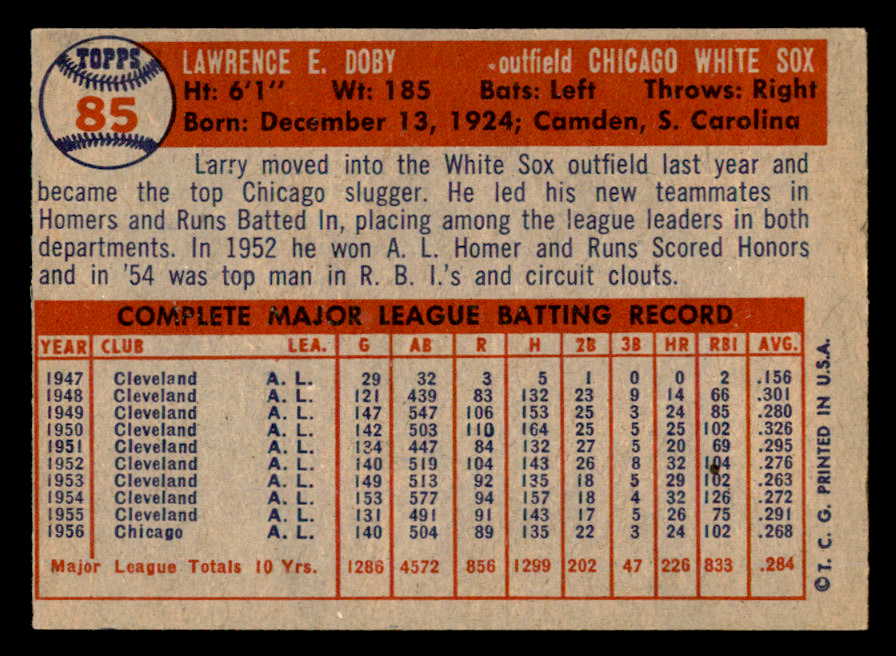 1957 Topps Baseball #085 Larry Doby White Sox VG-EX 540071