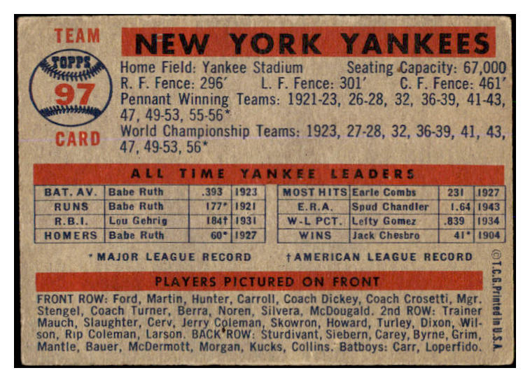1957 Topps Baseball #097 New York Yankees Team VG-EX 527597