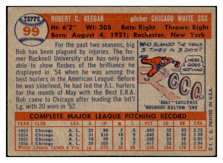 1957 Topps Baseball #099 Bob Keegan White Sox EX-MT 535430