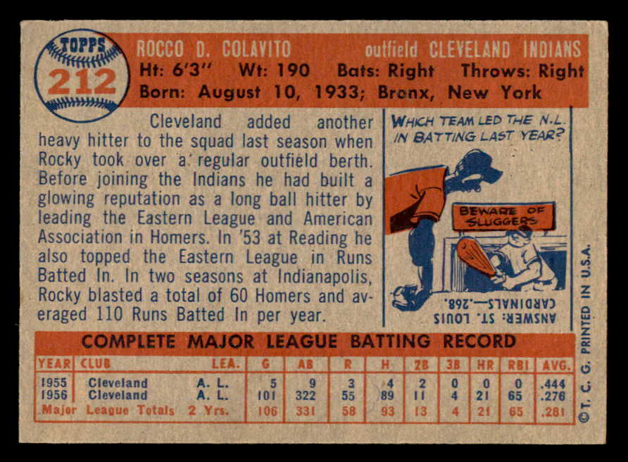 1957 Topps Baseball #212 Rocky Colavito Indians EX-MT 540060