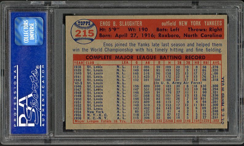 1957 Topps Baseball #215 Enos Slaughter Yankees PSA 6 EX-MT 538232