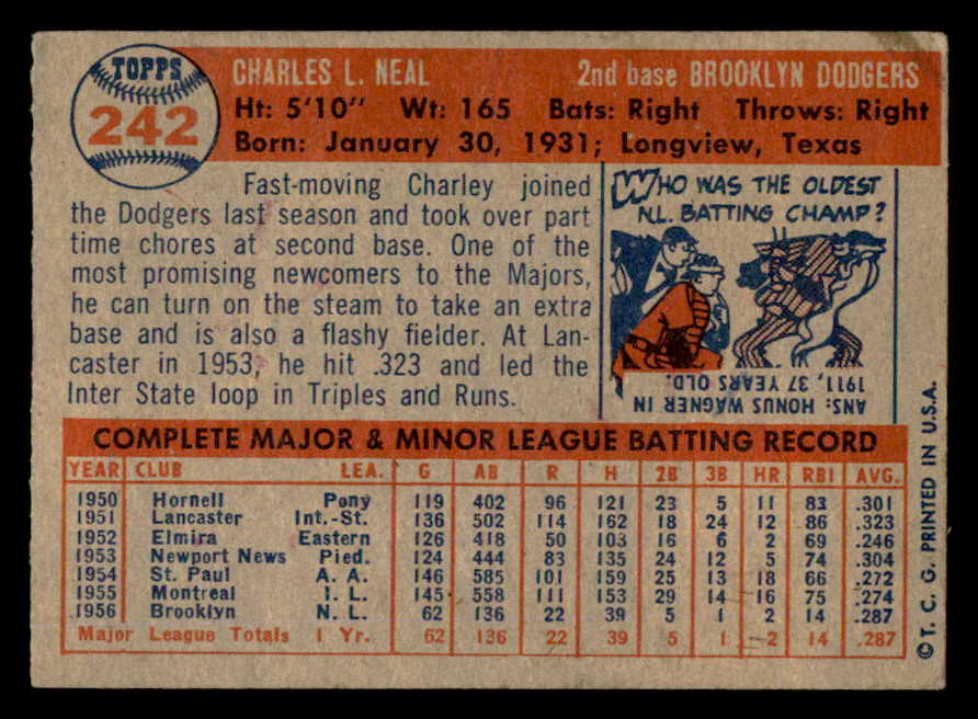 1957 Topps Baseball #242 Charlie Neal Dodgers VG-EX 540019