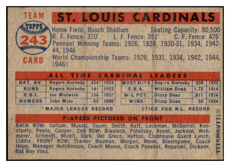 1957 Topps Baseball #243 St. Louis Cardinals Team EX-MT 530965
