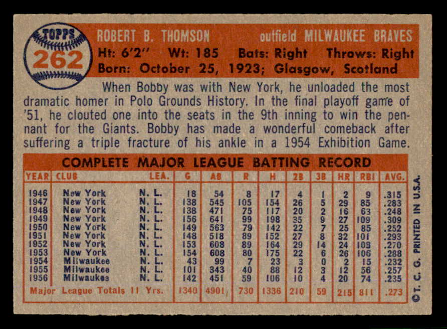 1957 Topps Baseball #262 Bobby Thomson Braves EX-MT 540015