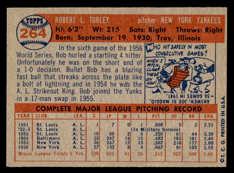 1957 Topps Baseball #264 Bob Turley Yankees EX-MT 540013