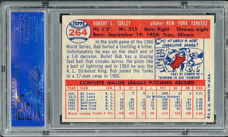 1957 Topps Baseball #264 Bob Turley Yankees PSA 7 NM 538242
