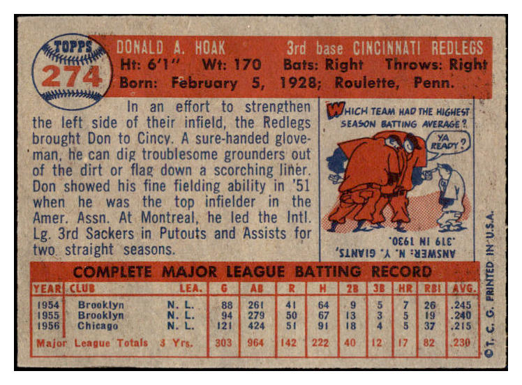1957 Topps Baseball #264 Don Hoak Reds EX-MT 530379